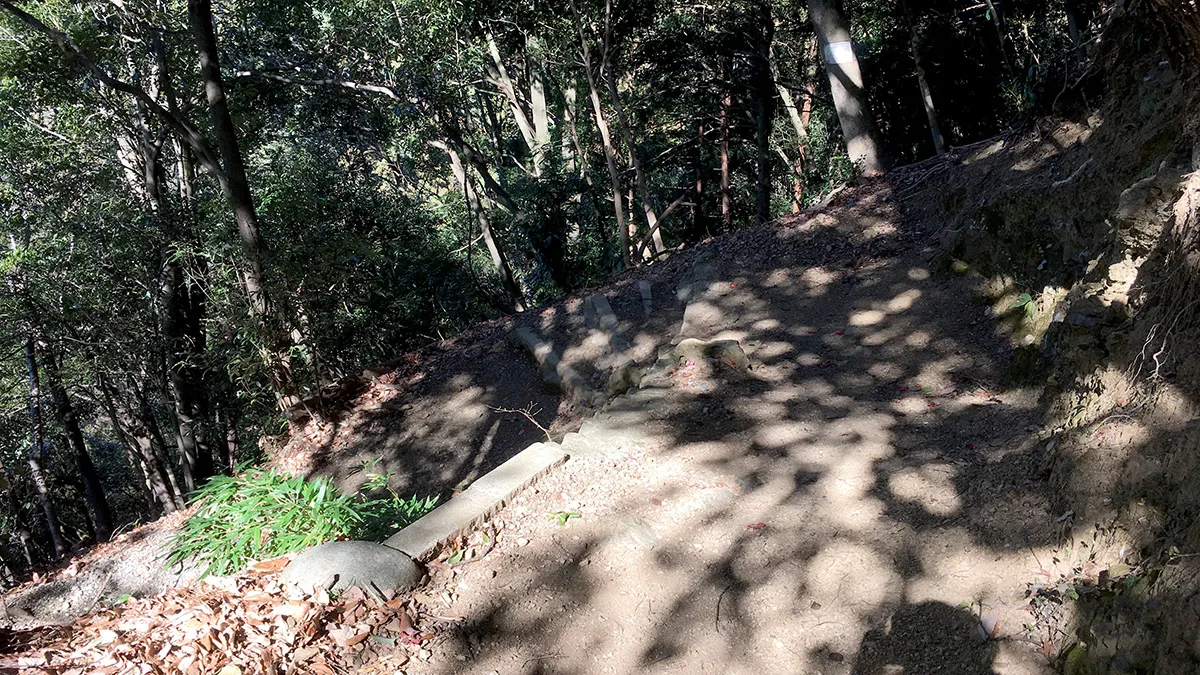 高尾山の稲荷山コースみたいですね。どう考えても無理だったので担いで戻り、来た道を恐る恐る降りた。
