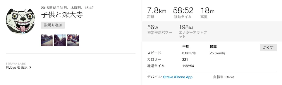 500kmは終わってたけど、最終日に子供の自転車練習に付き合ってたのでStrava付けてた。