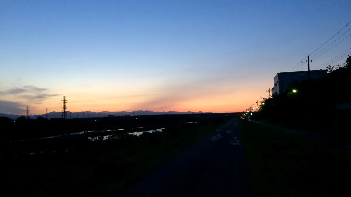 昼過ぎに家を出たので、帰る頃には日が暮れてしまった。最近こういう時間に走ってなかったので、のんびり写真を撮りながら帰ってきた。
