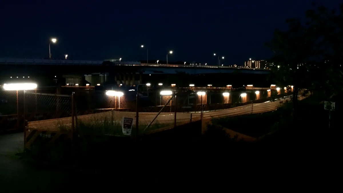 関戸橋の工事部分。日が落ちると暗くて怖い。iPhone5で撮影。