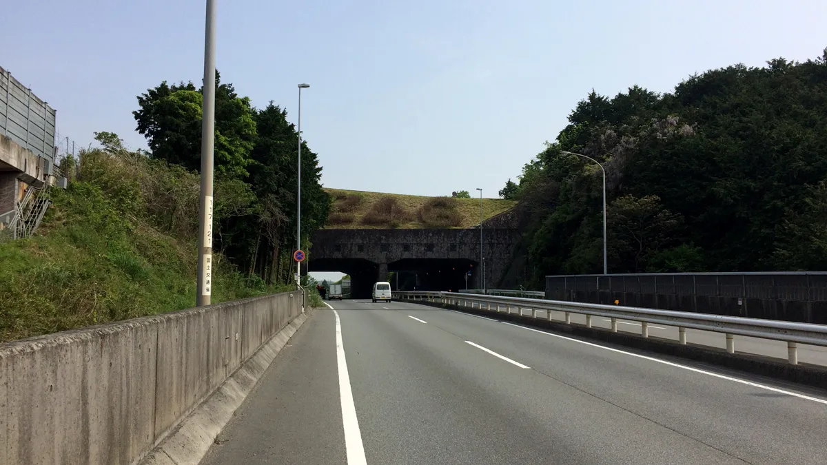 トンネルの上の植木に「246」と書いてあった。この道をずっと走るだけで皇居まで行けるのか。