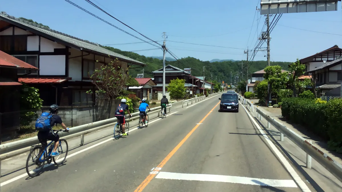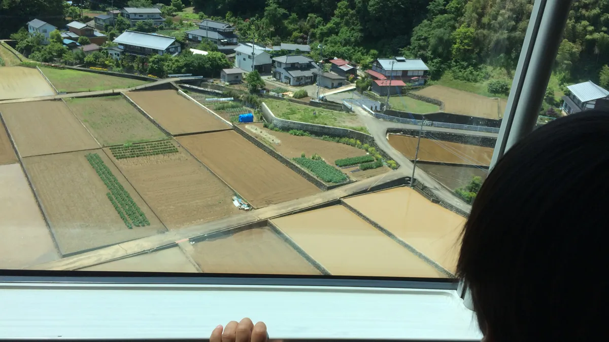 大月駅からリニア見学センターへはバスで移動する。駅前のバス停から15分くらい。この日は天気が良かったので、グループライドを楽しむ人たちをいくつか見ることができた。