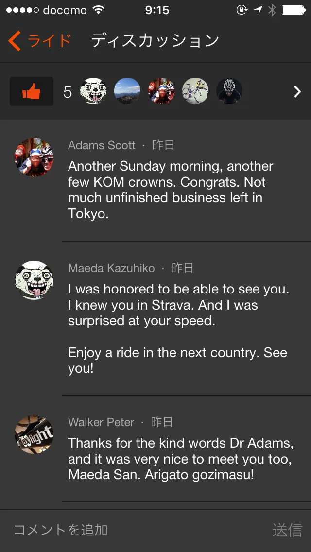 それと同時に、先月くらいから **「Last track meet for me in Japan…」**とか 「29 days left, not that I’m counting…」 というタイトルのライドが出てくるようになった。あれれ、引っ越すのかな?と思っていたが、それ以外に特に情報もなく、他のライドのタイトルもその日のトレーニングメニューばかりだったので、少し気になりながらも見ているだけだった。