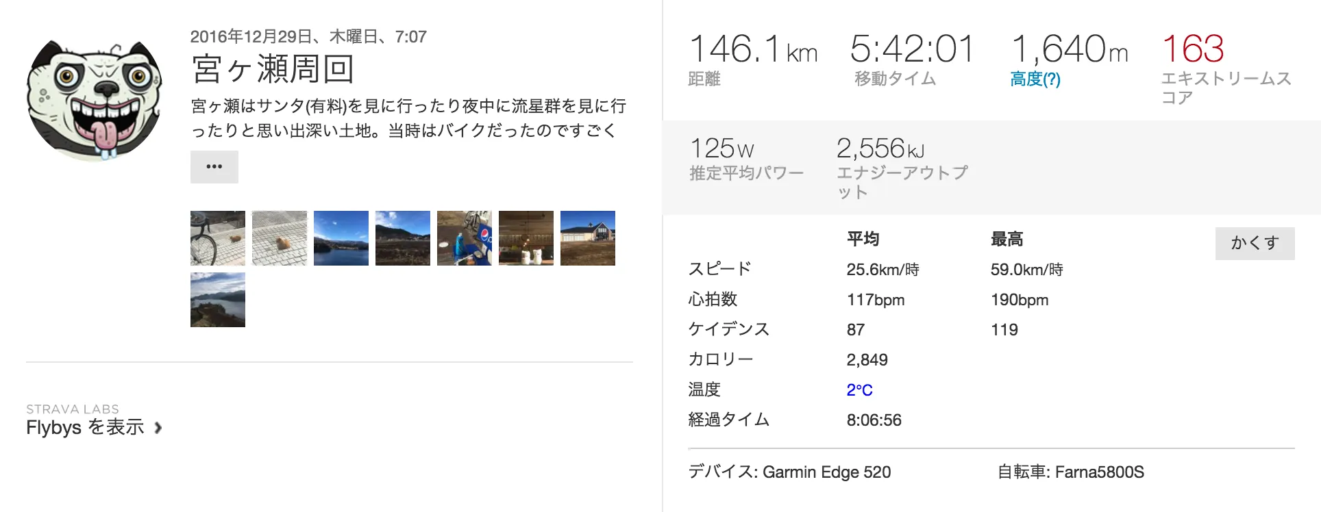 この日はStravaのタイトルにもあるように宮ヶ瀬周回というセグメントを頑張ってみようと3周(うち1周は試走)したんだけど、なぜかログに出てこなくて????ってなってる。一度ふれあいの館に入らないとダメなんだろうか。