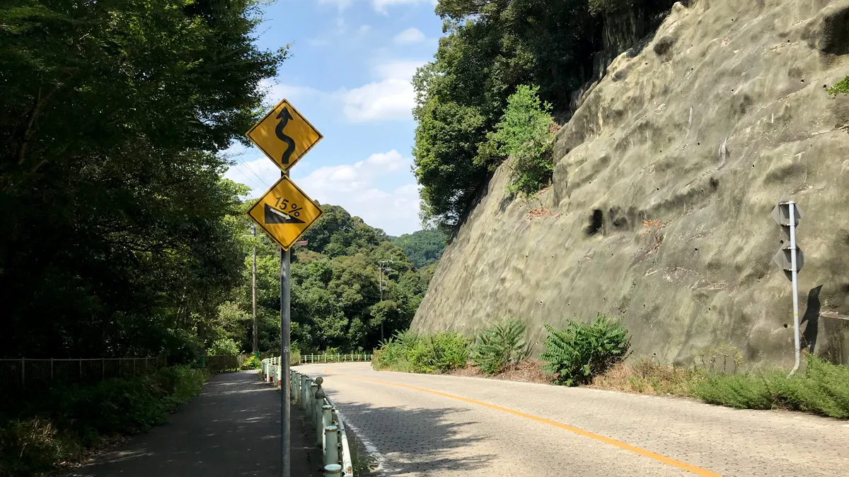 坂といえば、土岐川に出る所に斜度のきつい場所がある。この道は定光寺駅につながっているけど、古虎渓の方も同じような感じになっていてどちらも登りがいがある。