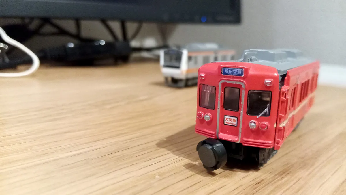 Atomは彩度が低め。さらに被写界深度が異常に低くて、成田空港、特急などの文字がボケてしまっている。