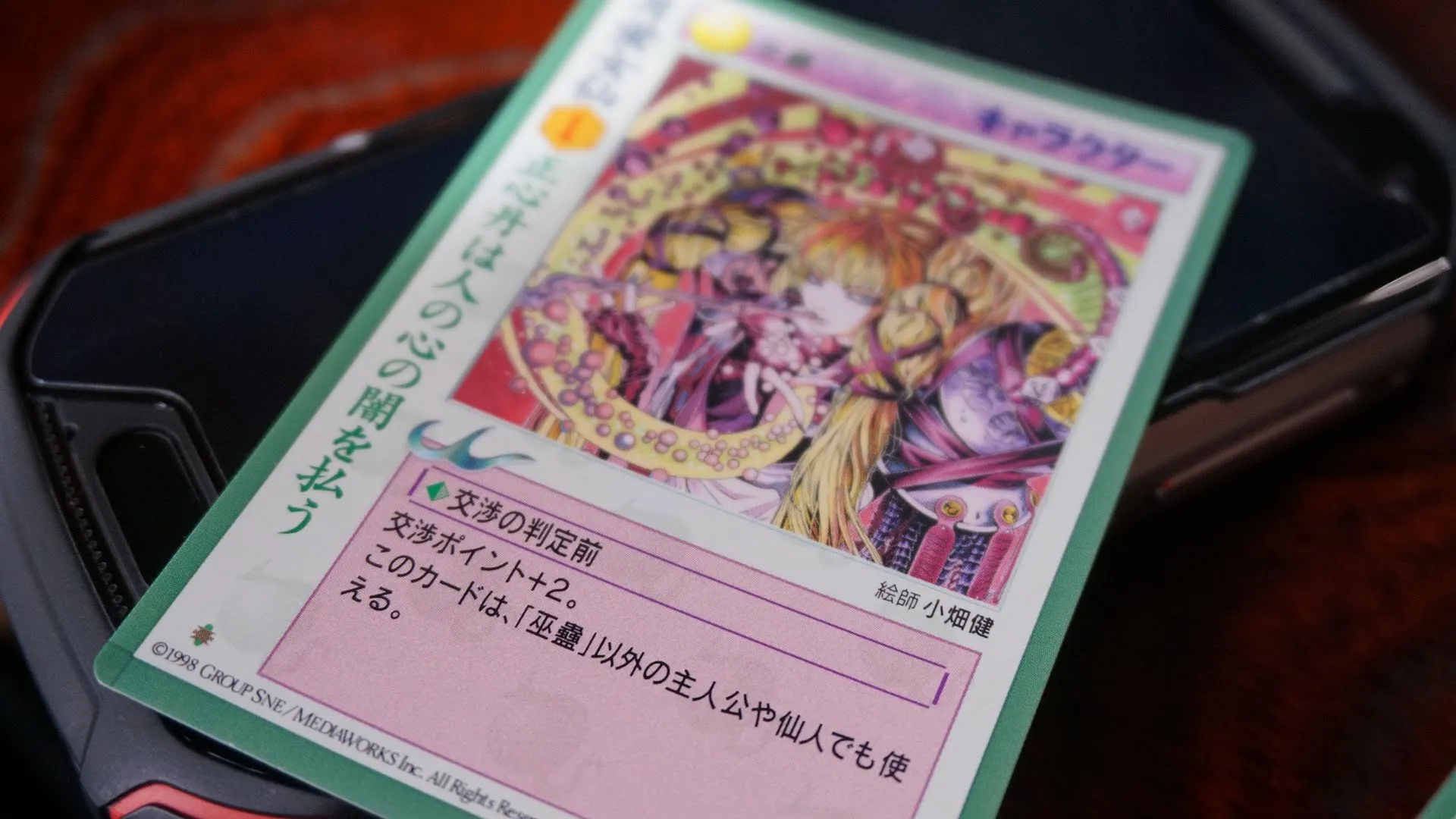 城を出て松本市内を観光する。縄手通り商店街の古いおもちゃ屋の店頭でじゃんけんゲームをしたらこれが出てきた。グループSNE、1998年、絵師…時間が止まっているようだ。