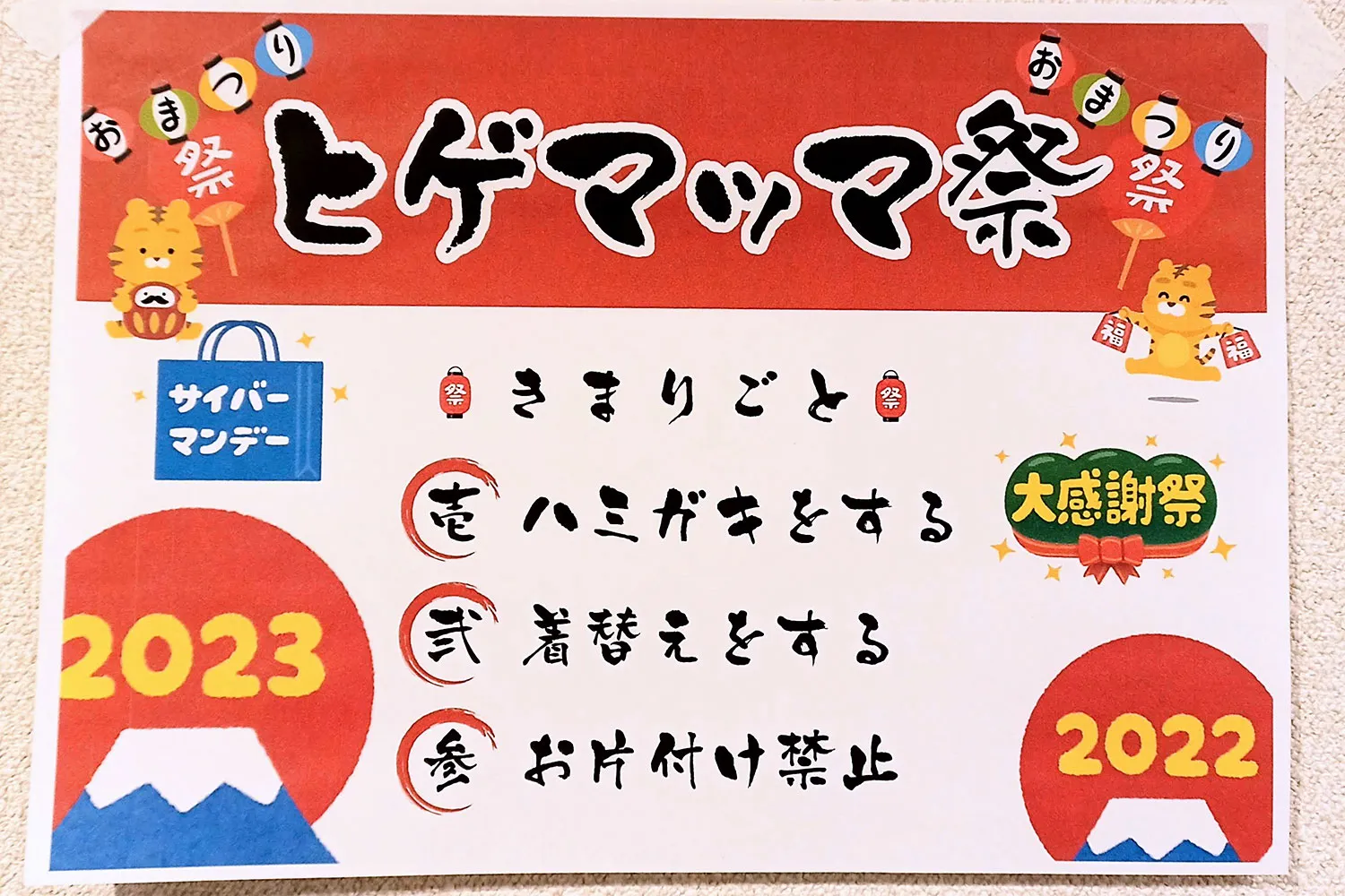 もう冬休みで子供はずっと家にいる。お母さんがいない3日間を父だけで乗り切るしかない。ヒゲの生えた方のママとして祭を開催することにした。