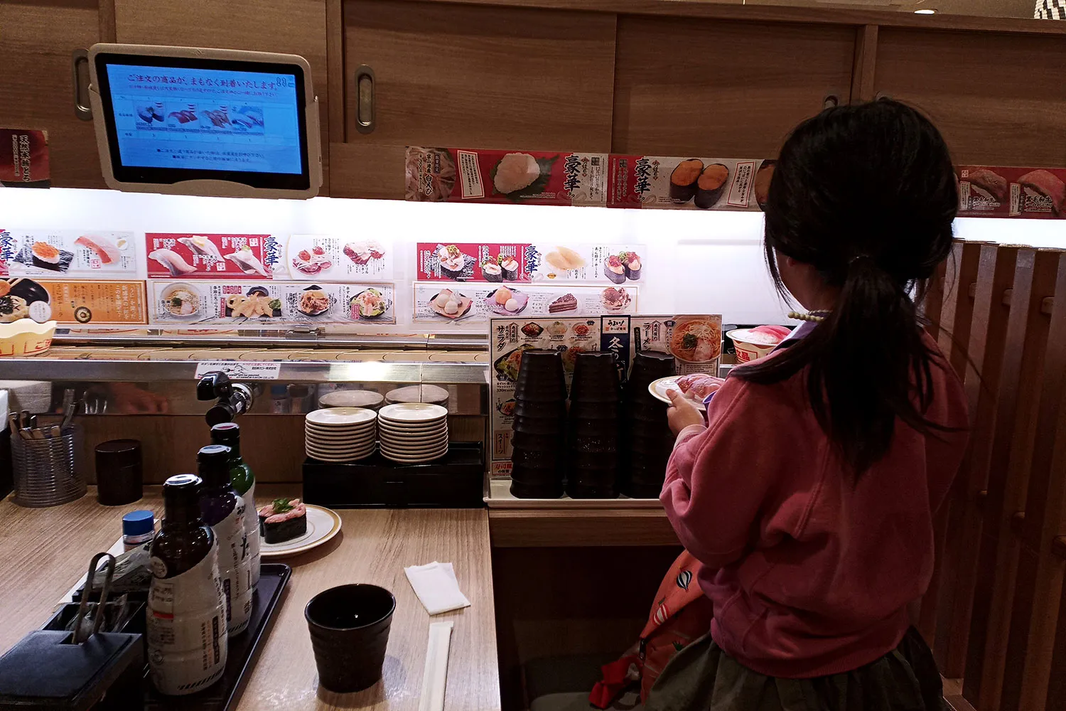 夕飯は面倒くさいので回転寿司に連れて行った。
