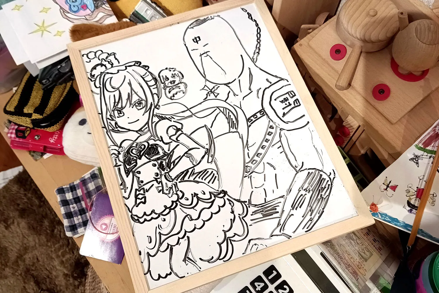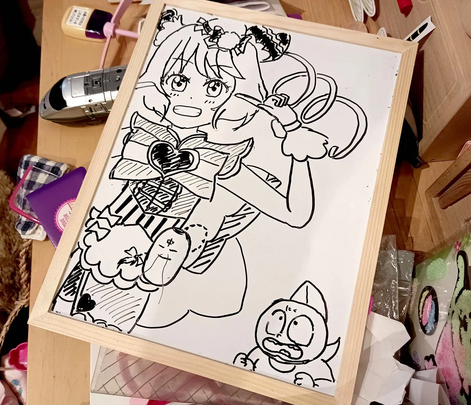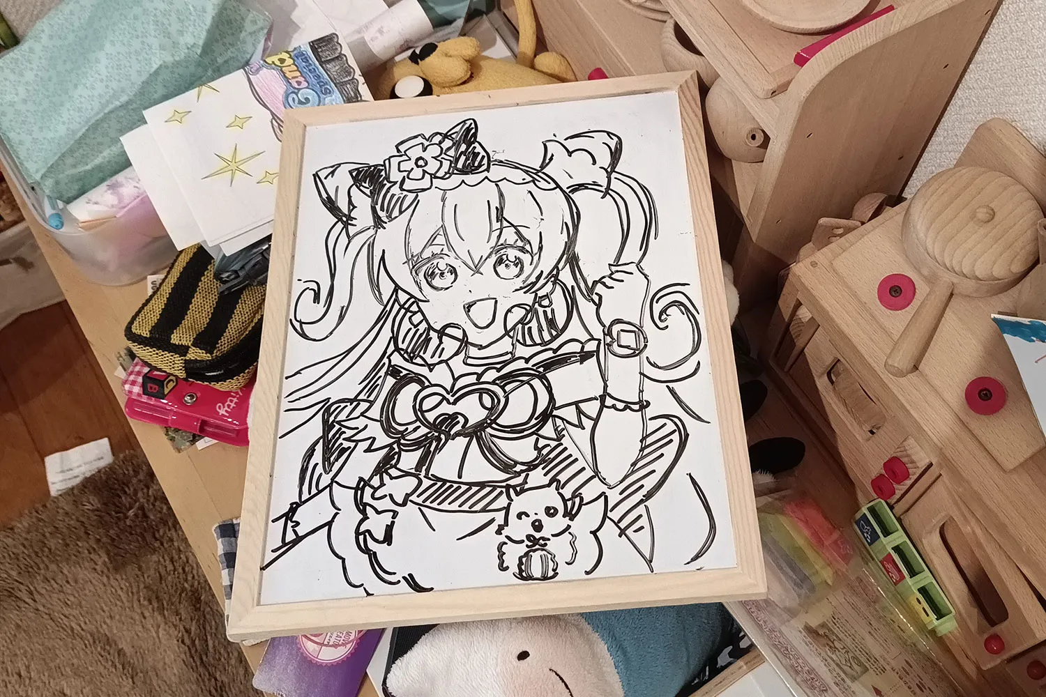 下の子向けにプリキュアも描いた。今回は食べ物がテーマで、中華料理のキャラもいるらしい。