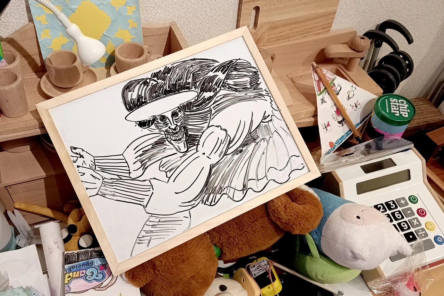 子供のタスク管理のためにセリアでホワイトボードを買ってきた。中小企業の出勤ボードみたいな感じでやることリストを管理したかったが、付箋を作ったりレイアウトを変えたりと本質的じゃない所に意識が向いてしまったので、お父さんは怒って怖い絵を描いて置いておいた。子供は一人でお風呂に入れなくなった。